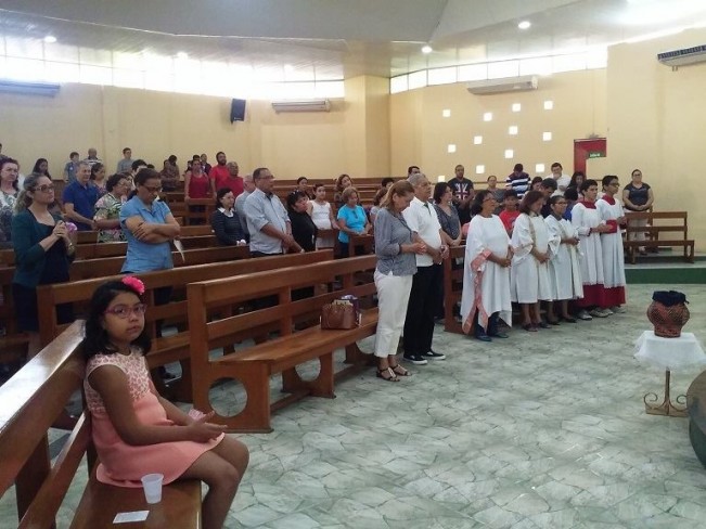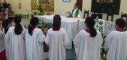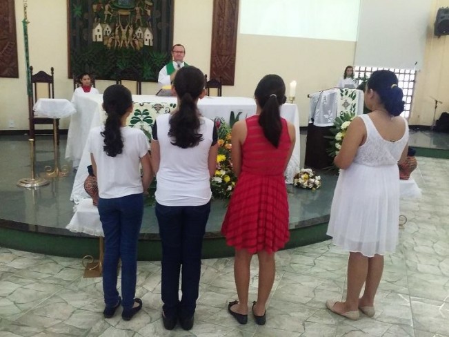 Durante a celebração das 8h30 deste domingo (17), quatro novas coroinhas foram enviadas e apresentadas a assembléia presente na celebração. Eloísa Cavalcante Lima, Flávia Fernanda Pereira Andrade, Kárita Rebeca e Letícia Cavalcante Lima fazem parte agora do grupo de Coroinhas e Acólitos da Paróquia Nossa Senhora Rainha dos Apóstolos. A celebração foi presidida pelo vigário paroquial, Pe. Cesar dos Santos.